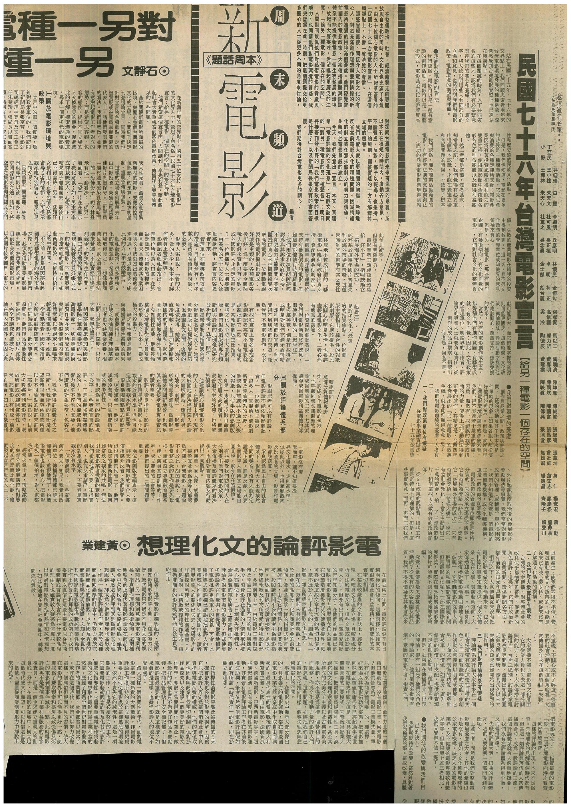 | 1987 Taiwan Cinema Manifesto | Manuscript | Wenxin Magazine / China Times | - | Schema.org / Dublin Core (DC) / RDF |